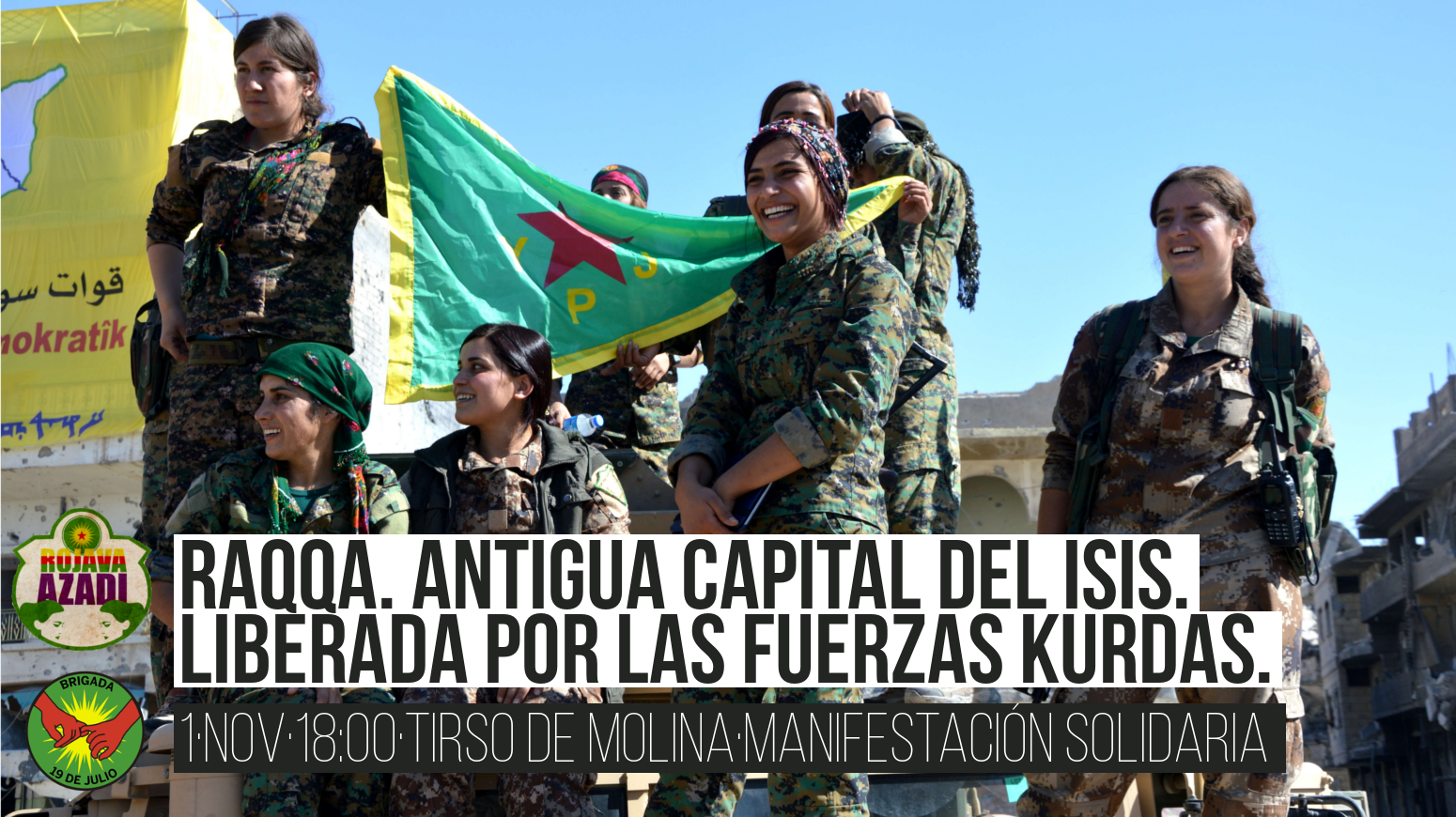 En el verano de 2014 ISIS domina buena parte del territorio de Siria e Iraq. En el norte de Siria, donde conviven distintas culturas como la kurda, asiria o árabe, se produjo un asedio del ISIS sobre la ciudad de Kobane que duró meses. La resistencia de las autodefensas kurdas (YPG/YPJ) fue de carácter heroico y supuso un punto de inflexión en la guerra contra el ISIS. Desde entonces, las YPG/YPJ, conformando una alianza mayor a través de las Fuerzas Democráticas Sirias, han ido ganando terreno al ISIS hasta la victoria del pasado 19 de octubre en la que fue la capital del Estado Islámico, Raqqa.