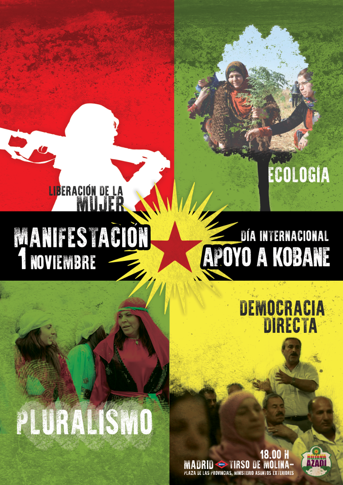 Desde Rojava Azadi Madrid os invitamos a solidarizaros de forma activa en la manifestación internacional del 1 de Noviembre y a conocer en profundidad este movimiento que creemos que tanto puede aportar en nuestras luchas y nuestra forma de ver y cambiar el mundo.